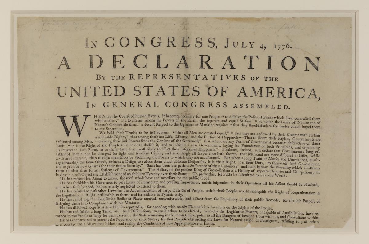 Dunlap Printer’s Proof of the Declaration of Independence, 1776
