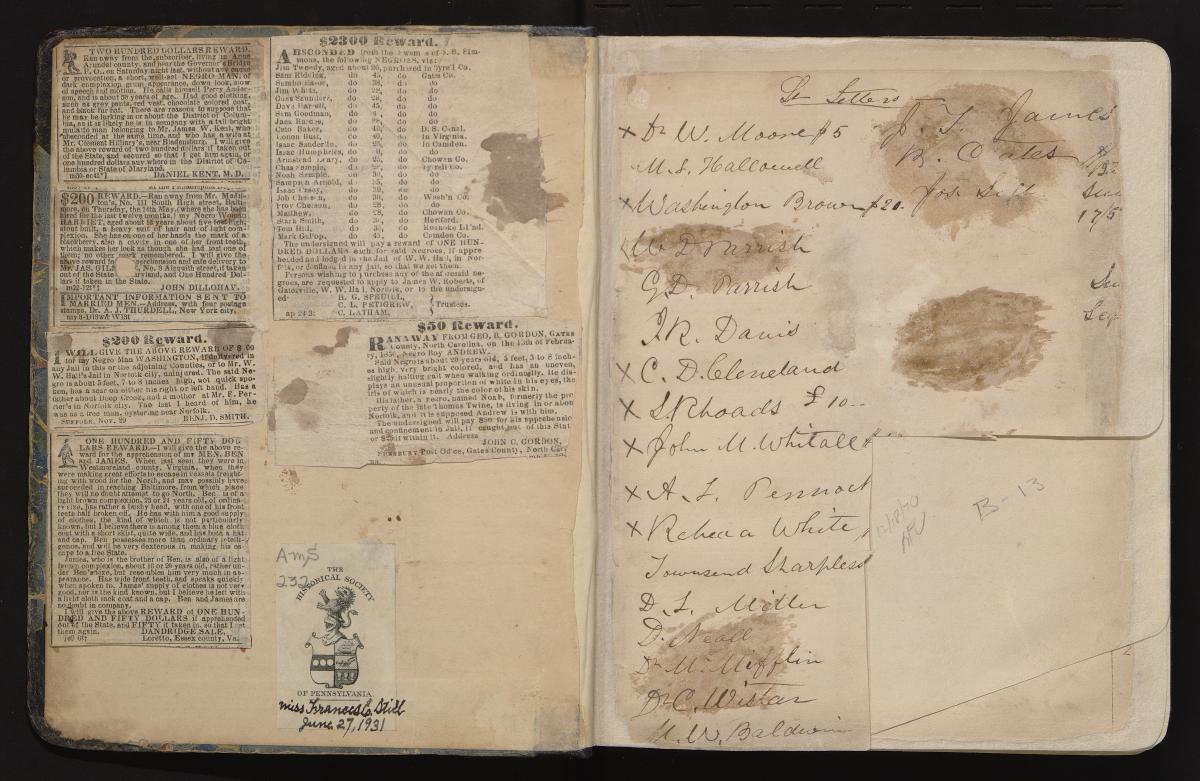 William Still was a prominent abolitionist who served as the chairman of the Vigilance Committee, an extension of the Pennsylvania Abolition Society. During the 1850s, Still played a key role protecting runaways from slave states as they passed through Philadelphia on the Underground Railroad. His meticulous journal details his experiences and the people he met during this period.